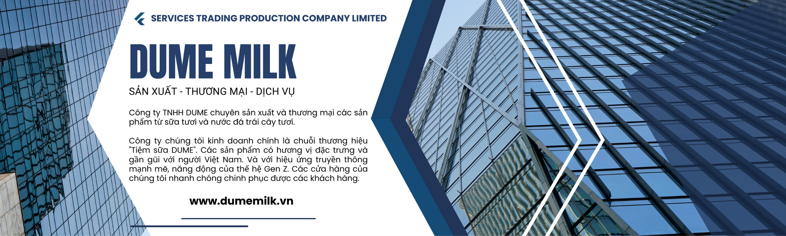 Công ty TNHH DUME chuyên sản xuất và thương mại các sản phẩm sữa tươi và nước đá trái cây tươi, các sản phẩm được lấy cảm hứng từ các loại trái cây đặc trưng, truyền thống của người Việt Nam.